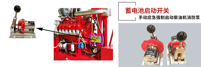 ★GB50151-2021《泡沫灭火系统技术标准》P397.1.4第5 款柴油机应具备2组蓄电池并联启动功能、机械启动与手动盘车功能。··当电控回路发生故障或蓄电量不足的应急情况下,可双手同步操作双接触器实施双蓄电池组并联供电启动,提高柴油机的启动成功率。